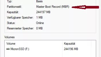Schau nomal bei Aomei nach, das steht immer mit dabei in welchem Partitionstil die Platten haben
