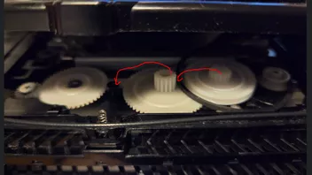 Das Zahnrad für den Treibriemen muss an die Stelle weiter links, wo jetzt das große Zahnrad mit kleinerem Innendurchmesser.