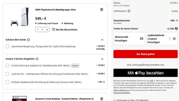 Ihr bekommt aktuell die PS5 Slim (Disc Edition) mit Assassin's Creed Shadows im Bundle für 549 Euro.